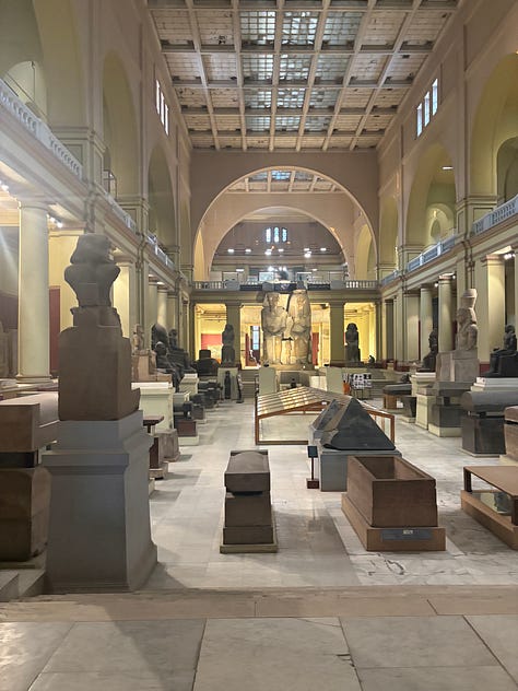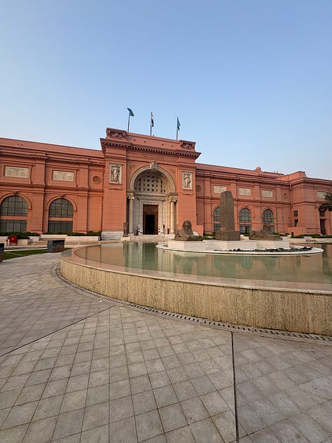 After the interview, I took advantage of the location and visited the Egyptian Museum (not to be confused with the Grand Egyptian Museum). This bubblegum pink building is crumbling in on itself; its remaining important collection (the King Tut exhibit) was recently moved to GEM, so now it’s falling into disrepair. What remains is essentially all the artifacts too old or broken for the GEM to want them. The vibe? Insane. The expereince? 10/10